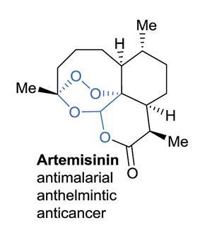 The peroxide functionality is most unusual and – on the brink of stability – has always had the reputation of a dangerous group likely to react abruptly. Based on this, it can be found in highly reactive compounds such as explosives and radical initiators. However, in recent years peroxides have gained further importance as highly reactive but efficient antimalarial drugs such as artemisinin for which Youyou Tu just received the 2015 Nobel Prize in Medicine.